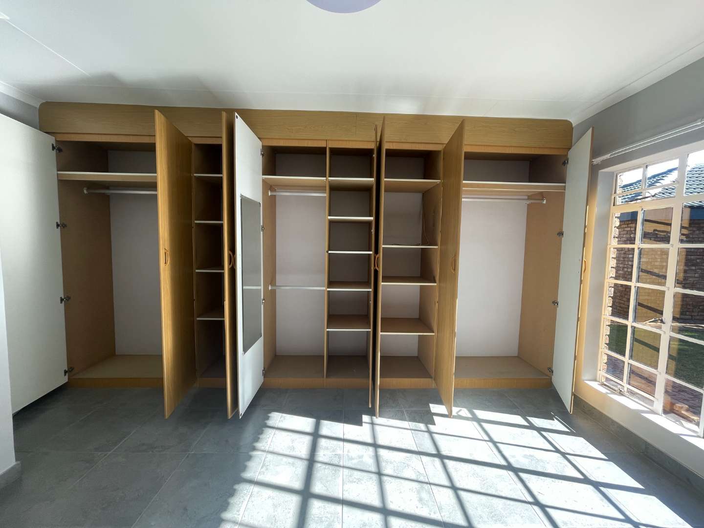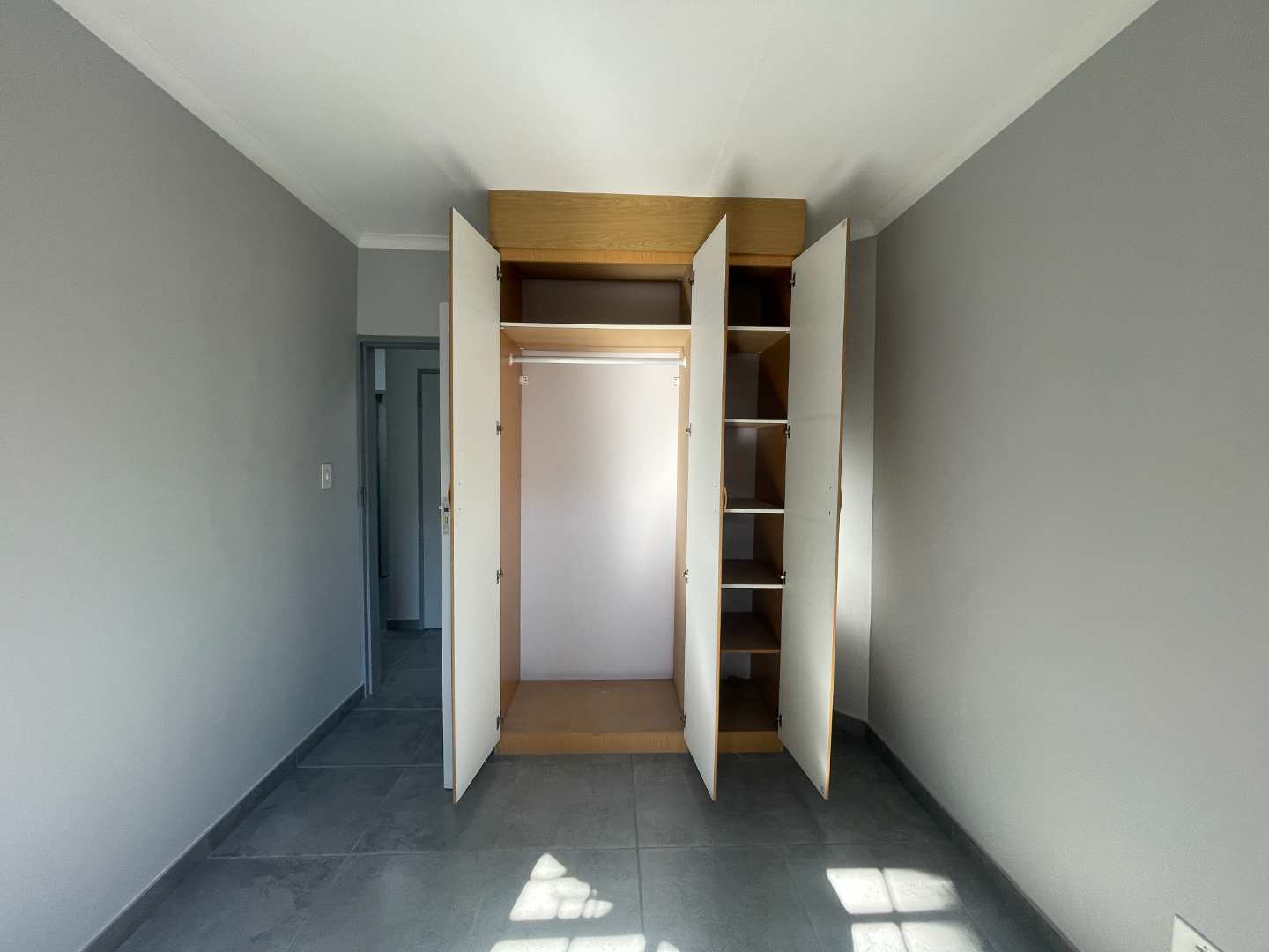The home boasts three well-appointed bedrooms, each with built-in cupboards to maximize storage space. The main bedroom offers the luxury of an ensuite bathroom for added privacy and convenience, while the second bathroom caters to the other two bedrooms and guests.