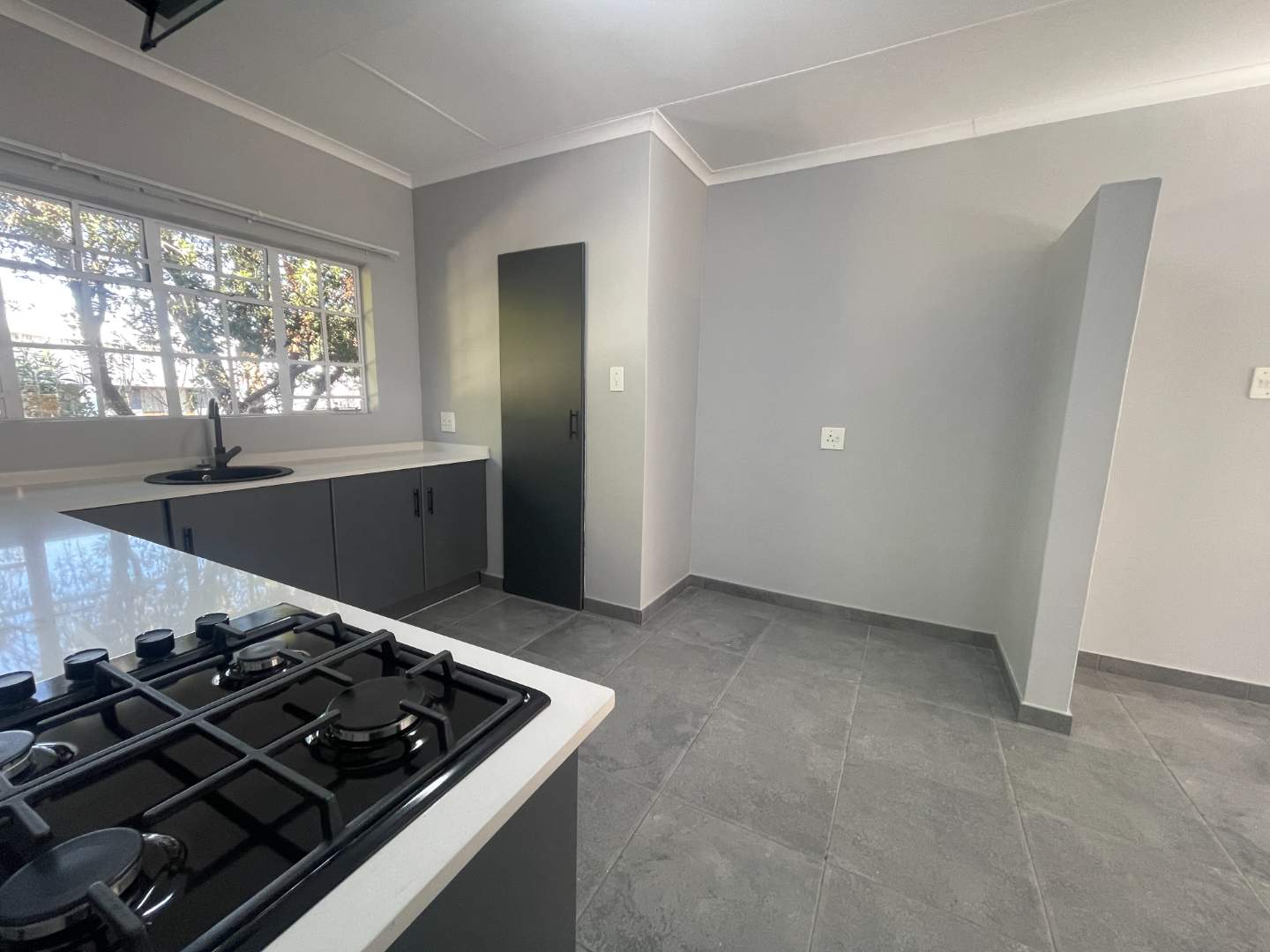 As you arrive, you'll appreciate the convenience of a double garage with automated doors, providing secure parking and easy access to your home. Step inside to discover a newly modernized kitchen that will inspire your culinary endeavors, featuring a sleek gas hob, an electric stove, and a generously-sized walk-in pantry cupboard. Adjacent to the kitchen is a functional scullery, equipped with connections for both a dishwasher and washing machine, offering practical utility space.
