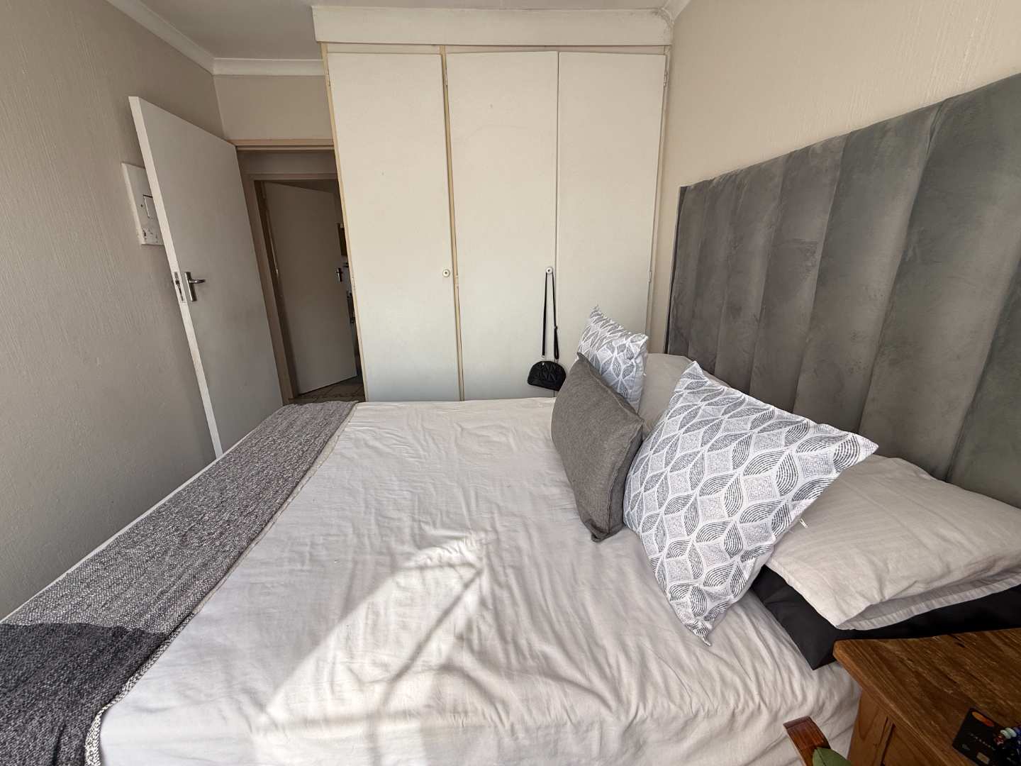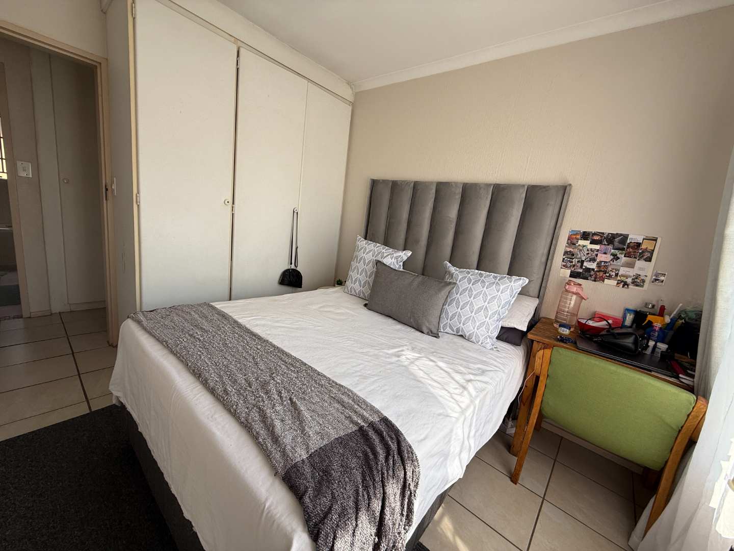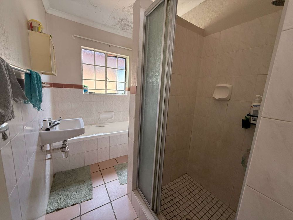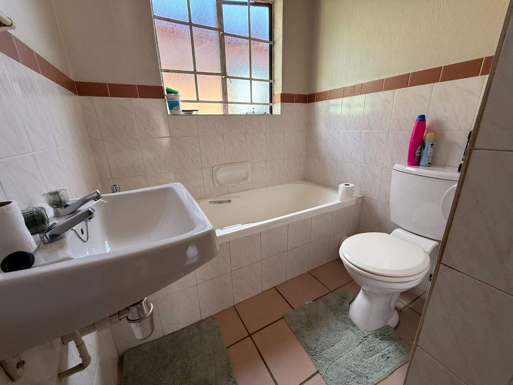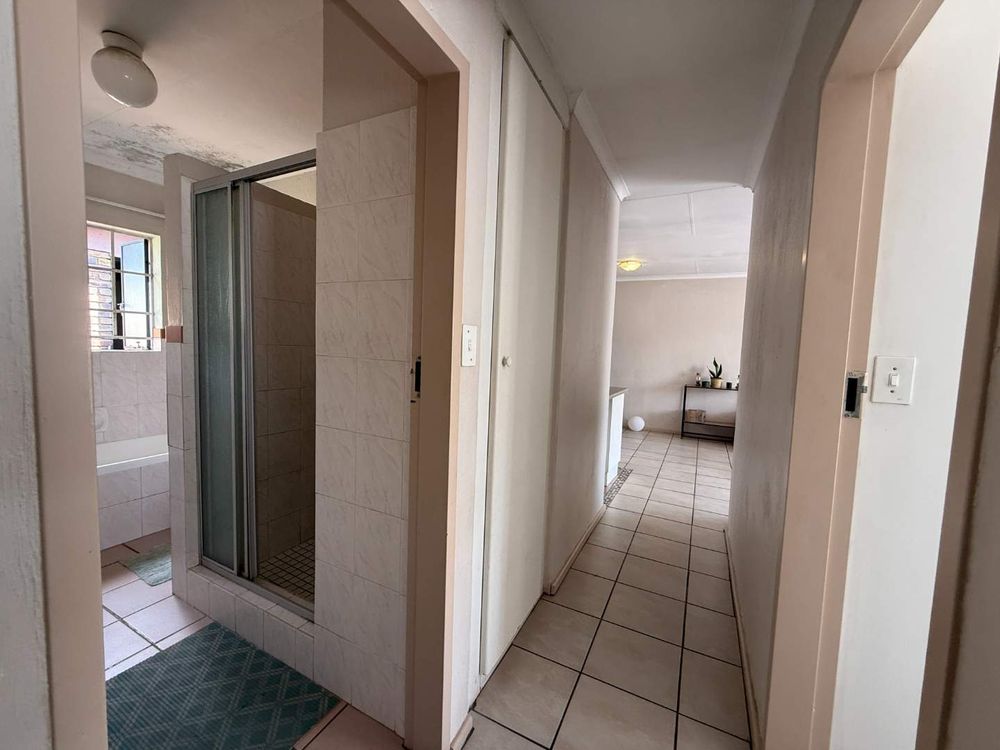 This townhouse features three spacious bedrooms, each fitted with built-in cupboards to cater to all your storage needs. The bathroom is thoughtfully designed with a bath, shower, toilet, and basin, offering functionality and style for your daily routine.