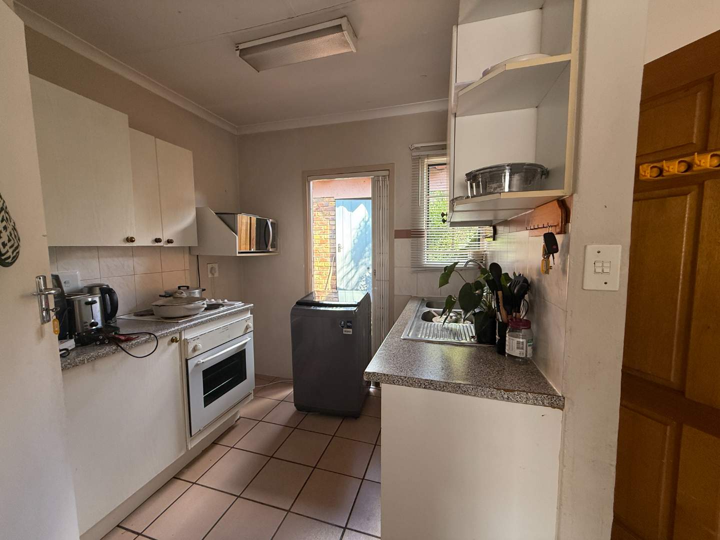 Upon entering, you'll be greeted by a well-appointed kitchen, equipped with an under-counter connection for your washing machine, making daily chores a breeze. The open-plan living area seamlessly extends to the backyard, providing an excellent space for outdoor gatherings and perfect for hosting a braai with friends and family.
