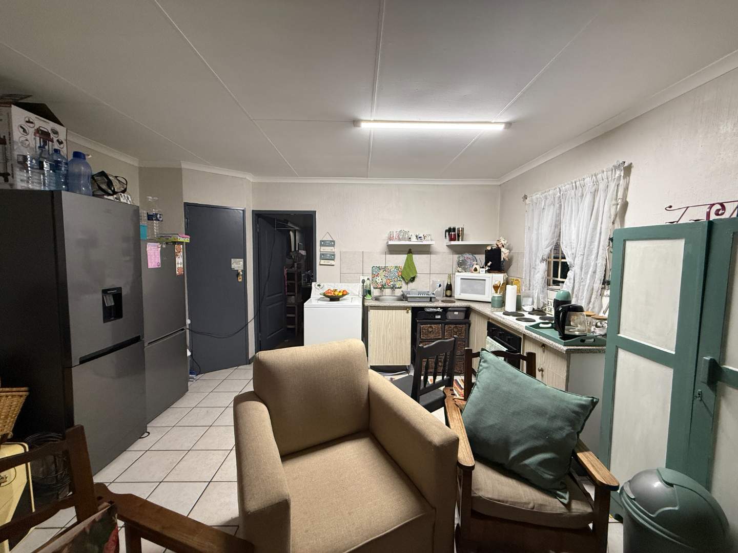 As you approach the front door, you'll be captivated by the meticulously maintained garden, setting a welcoming tone. Step inside to find an open-plan living area that seamlessly integrates with the kitchen. The kitchen is thoughtfully equipped with an pantry cupboard, under-counter connection for your washing machine, simplifying your daily chores.