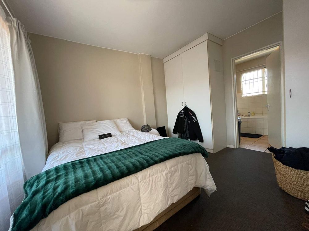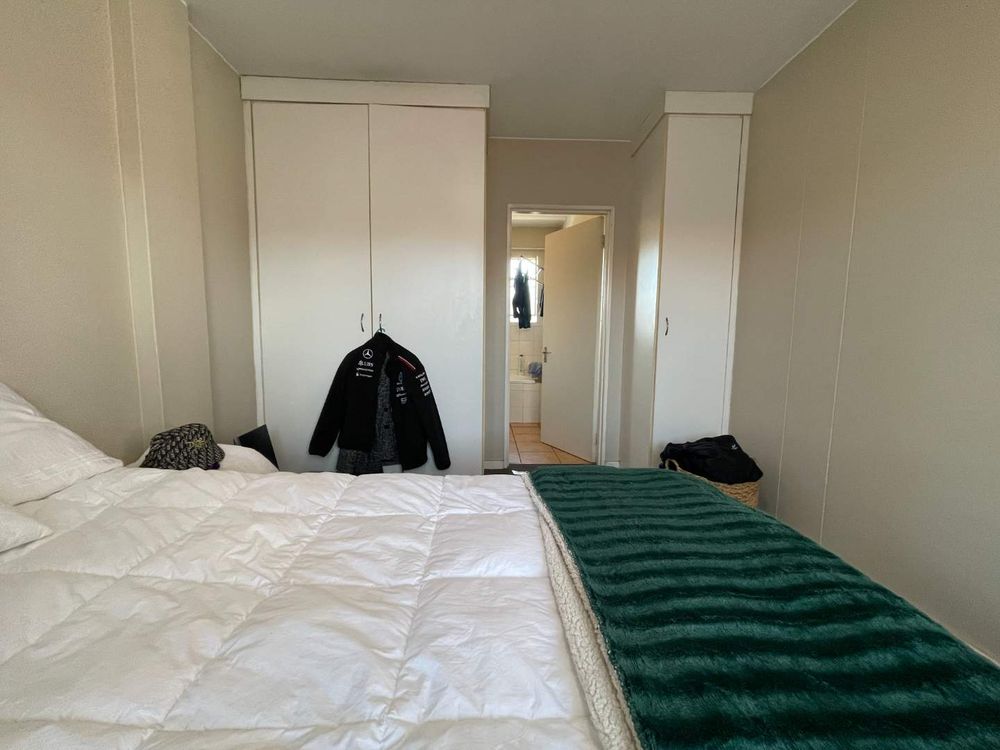 The residence features two well-appointed bedrooms, each with built-in cupboards to ensure ample storage space. Both bedrooms boast ensuite bathrooms, providing privacy and luxury. One bathroom is designed with a relaxing bath, while the other offers the convenience of a modern shower.