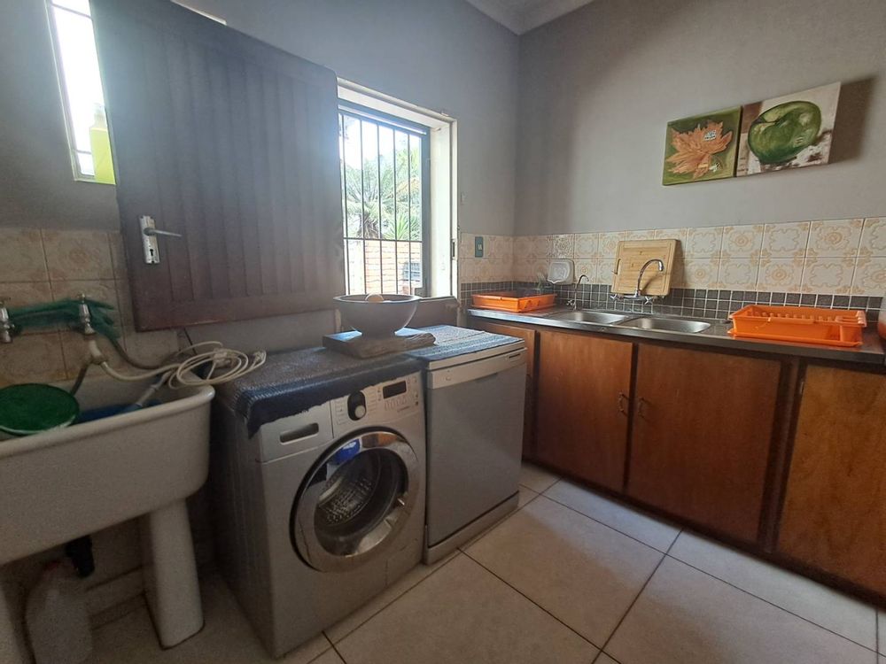A double garage offers secure parking and extra storage. Outside, a large garden is perfect for children to play or for hosting gatherings. The property includes a borehole to ensure a reliable water supply and an additional outdoor toilet for convenience.