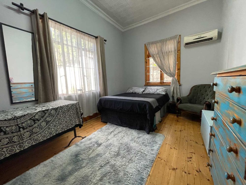 Welcome to this timeless gem, a house brimming with character and charm. This unique property features exquisite wooden floors and windows, offering a warm and inviting ambiance throughout. The home boasts three spacious bedrooms, each with ample cupboard space. The main and second bedrooms are interleading, providing a flexible living arrangement to suit your needs.