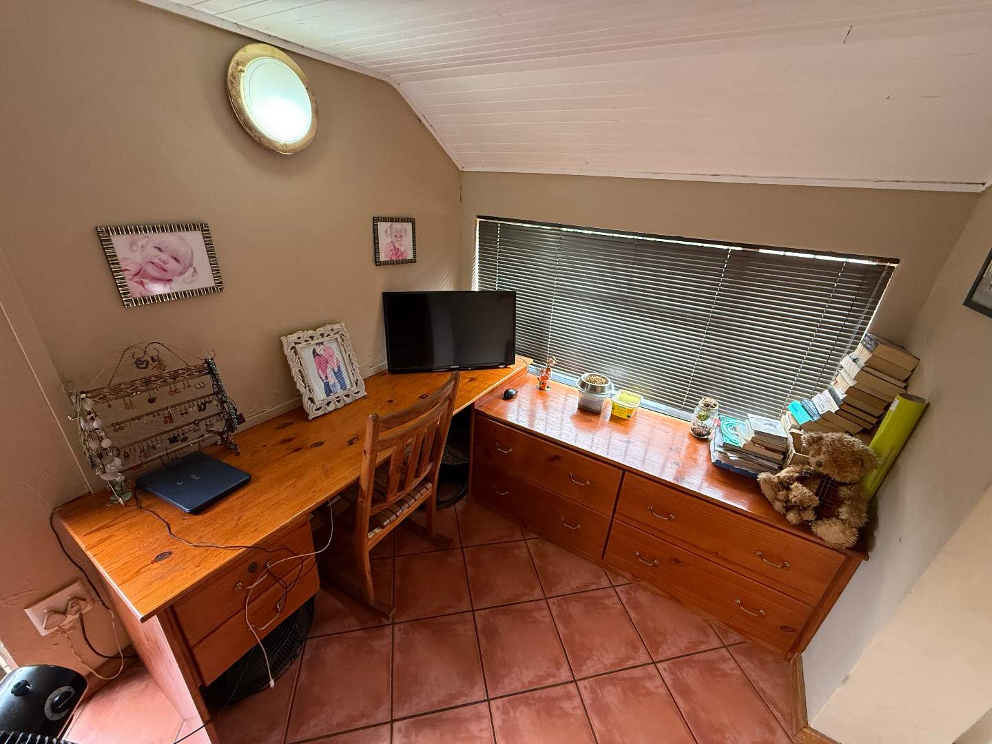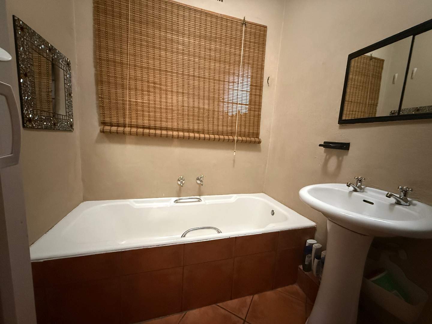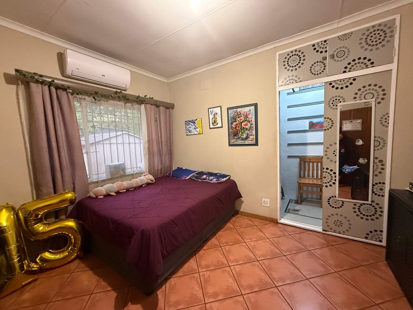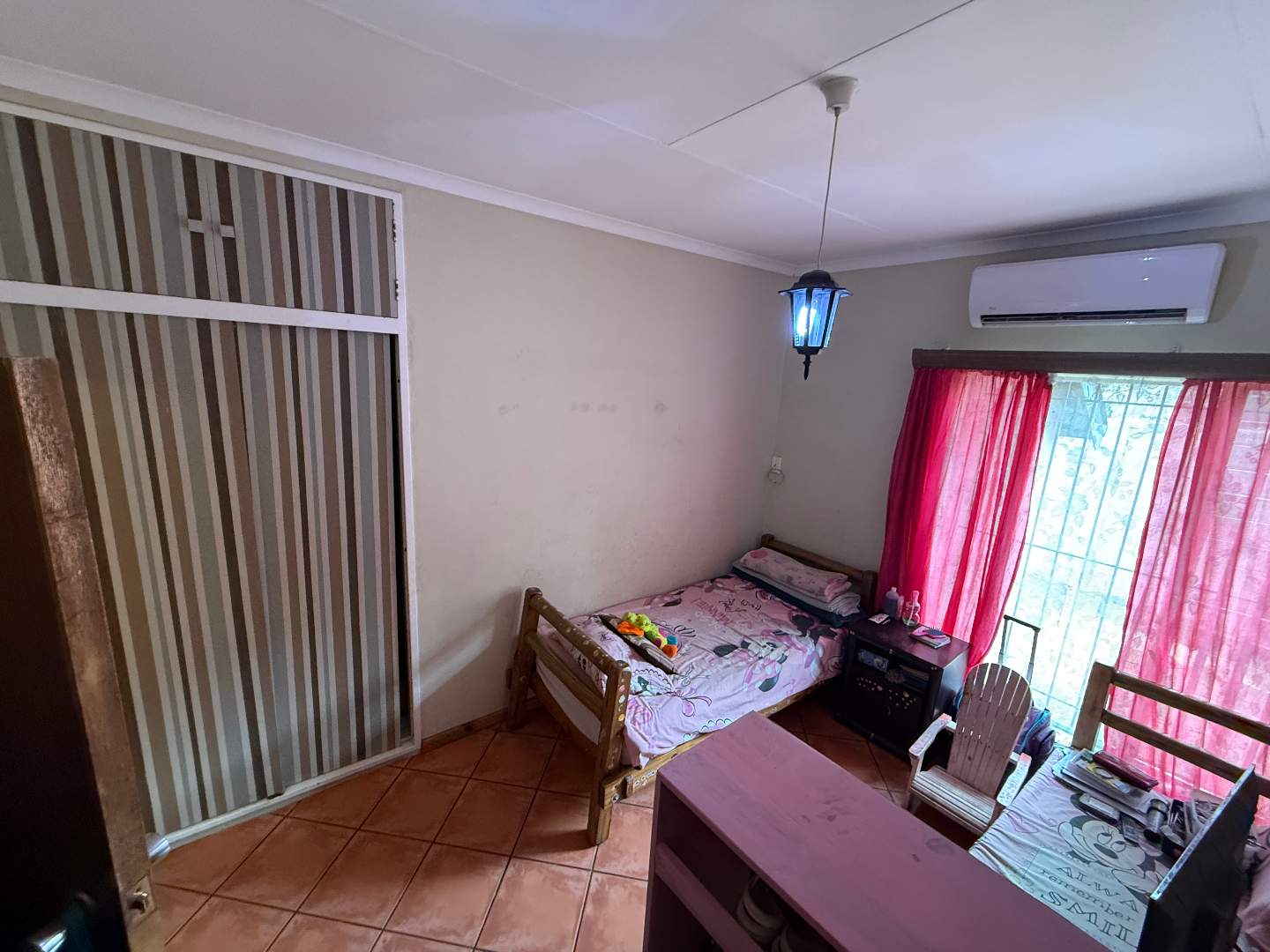 The home features three well-appointed bedrooms, each equipped with built-in cupboards and air conditioning, ensuring a restful retreat. The main bedroom boasts an en-suite bathroom for added privacy and convenience, while a second bathroom serves the remaining bedrooms.