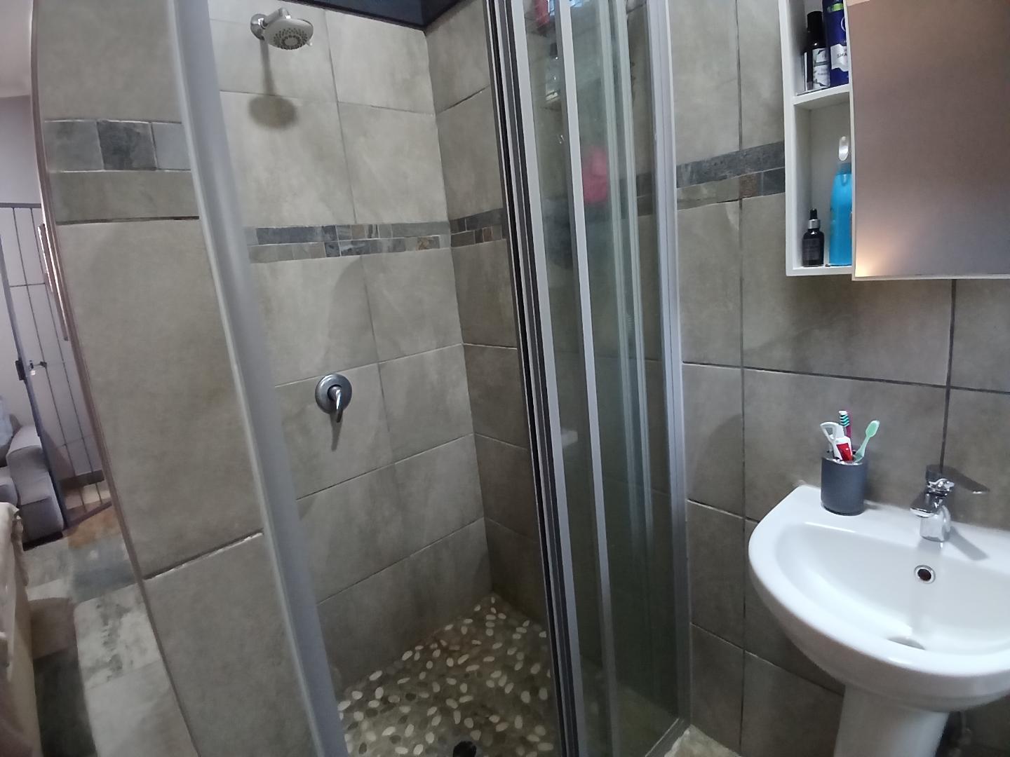 The well-appointed bedroom comes equipped with air conditioning and built-in cupboards, offering ample storage and ensuring a comfortable retreat after a long day. The bathroom is tastefully designed with a shower, basin, and toilet, completing this charming home.